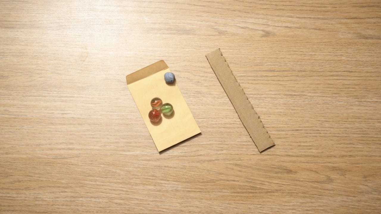 In your kit you will find a cardboard piece and some marbles in Bag 2 to build your own lever!